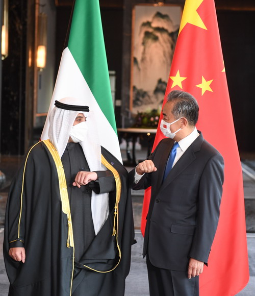 2022年1月12日,国务委员兼外长王毅在江苏无锡同科威特外交大臣兼内阁事务国务大臣艾哈迈德举行会谈。