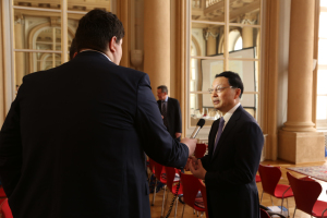 林大使说,欧洲是“一带一路”建设的重要参与方,以穿梭往返的中欧班列为标志,“一带一路”合作有力促进了欧亚大陆两端互联互通,将中国和欧洲发展繁荣紧密联系在一起。斯洛伐克政府一直积极支持并参与“一带一路”建设,是首批与中方签署“一带一路”政府间合作谅解备忘录的欧洲国家之一。近年来,两国各领域交流合作在“一带一路”框架内蓬勃发展,成果显著。今年是中斯建交70周年,希望斯洛伐克能够更加积极地参与“一带一路”建设,抓住中国深化改革开放的新机遇,将两国友好合作关系提升到新的高度。