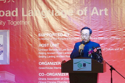 本次艺术展由中国驻加纳使馆、中国行为法学会法治中国文化艺术研究院和北京古道兰亭艺术馆主办,共有15位中国艺术家70余幅中国画与书法作品及9位加纳艺术家20幅油画作品参展,在阿克拉、海岸角等城市共举办3场展览,吸引数千名观众欣赏。