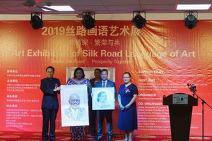 最后王世廷大使和第一夫人共同启动“丝路画语”艺术展。