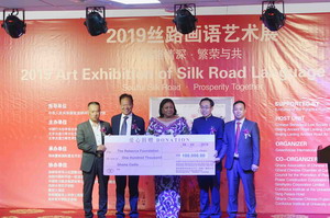 中国艺术家现场举行了画作慈善义卖,将10万塞地善款捐赠给瑞贝卡基金会,并向第一夫人瑞贝卡赠送了阿库福-阿多总统及瑞本人画像。