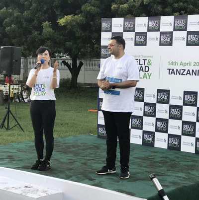 2019年4月14日,渣打银行“一带一路”全球接力跑活动在坦桑尼亚达累斯萨拉姆举行,驻坦桑尼亚大使王克率使馆工作人员、渣打银行(坦桑尼亚)高管及员工、当地民众等100余人参加活动。
