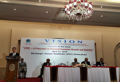 2019年4月17日,驻巴基斯坦大使姚敬应邀出席巴基斯坦智库战略愿景研究所举行的《中巴经济走廊:驱动地区经济增长与稳定》新书发布研讨会并讲话。巴基斯坦参议员穆沙希德、巴国家科技大学中国研究中心主任贾维德、战略愿景研究所执行所长奇马等参会。