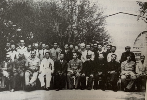 周恩来、朱德等与包括爱泼斯坦在内的中外记者团成员合影