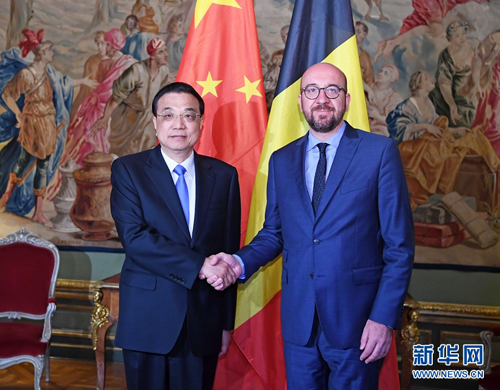 当地时间2019年4月9日上午,国务院总理李克强在布鲁塞尔埃格蒙宫会见比利时首相米歇尔。