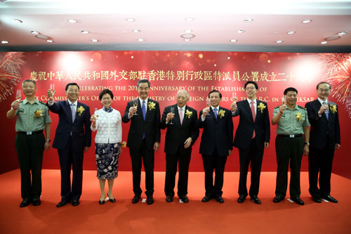 在香港回归祖国20周年的喜庆日子里,我们迎来了外交部驻香港特别行政区特派员公署成立20周年。1997年7月1日,雄壮的国歌在会展中心奏响,国旗和区旗冉冉升起,中华人民共和国香港特别行政区诞生了。伴随这一历史时刻,外交部驻港公署正式成立,这是中国政府对香港恢复行使主权的重要象征。20年来,在历任特派员的带领下,公署忠诚履职,不辱使命,全力做好涉港外交工作,取得了丰硕成果。值此公署成立20周年之际,我谨代表外交部,向公署全体同仁表示热烈祝贺!向特区政府和特区各界长期以来对外交工作和公署工作的关心和支持表示衷心感谢!我也想借此机会对谢锋特派员履新表示祝贺。
