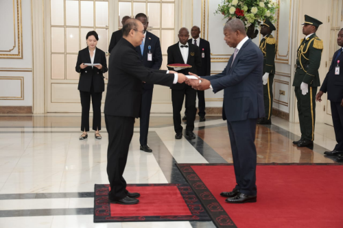 2024年2月29日,新任驻安哥拉大使张斌向安总统洛伦索递交国书。安经济协调国务部长马萨诺等多名国务部长及部长参加仪式。