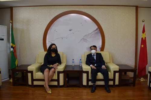 2022年2月4日,驻多米尼克大使林先江与多总理夫人梅丽莎议员在使馆共同观看了2022年北京冬奥会开幕式直播。双方还就中多关系和双边体育文化交流等交换了意见。