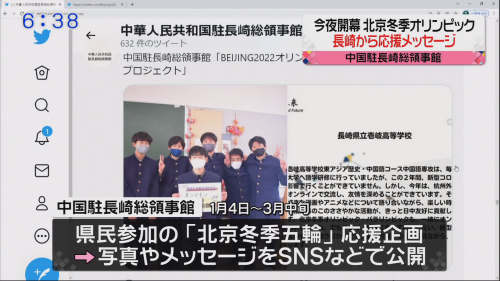 张总领事表示,长崎是中日民间交流的窗口,始终走在对华友好的前列。近期我馆举办“共迎冬奥会,一起向未来”主题宣传活动,长崎各界通过拍照片、写寄语分享与世界、中国、体育美好相遇的方式,来祝福北京、为冬奥会加油,希望大家在寒冷的冬天感到温暖,在疫情纷扰下,团结合作、共克时艰,展现出不抛弃、不放弃的奋斗精神。