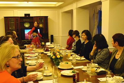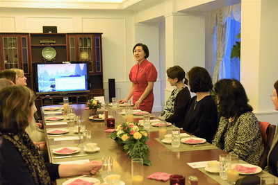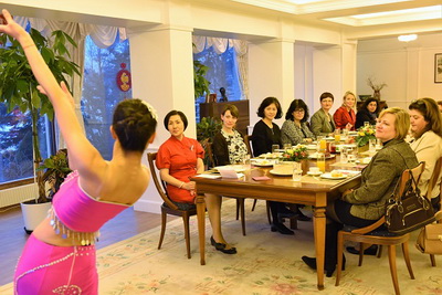 秦飒女士首先欢迎各国使节夫人的到来并表示,文化艺术没有国界,是沟通人民心灵的桥梁。希望通过对中国舞蹈的展示,让大家有机会接触并了解丰富多彩的中国传统文化和艺术,全面展现中华文明的独特魅力,更希望通过这一平台,推动中国与各国在更广泛的艺术领域开展全面交流与合作,实现共同提高,深化人民间的友谊。秦女士还邀请大家出席除夕之夜在赫尔辛基市中心举行的第十一届“欢乐春节”庙会,欣赏丰富精彩的中华传统文化艺术表演,一起欢度新春佳节。