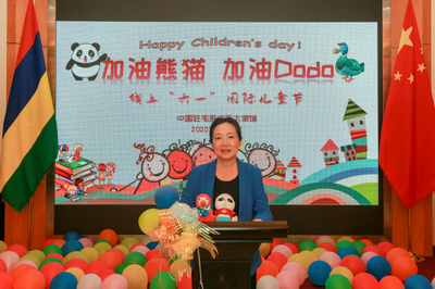2020年5月31日,“六一”国际儿童节之际,驻毛里求斯使馆举办“加油熊猫!加油Dodo!”线上“六一”国际儿童节活动。近100名中毛儿童和家长通过视频会议软件参与活动。孩子们用歌声、乐声、欢笑声,在新冠肺炎疫情这个特殊时期,记录下一段特别记忆,共同度过了一段美好的节日时光。