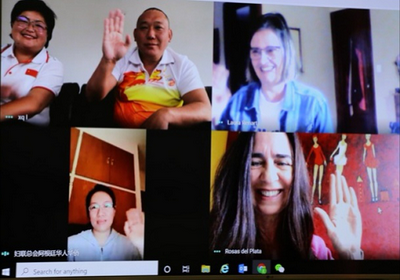 2020年6月23日,在中国传统节日端午节前夕,驻阿根廷大使夫人宁懿参赞同阿根廷银玫瑰赛艇协会、阿根廷华侨华人妇女联合总会及阿根廷龙舟协会负责人举行视频交流会。