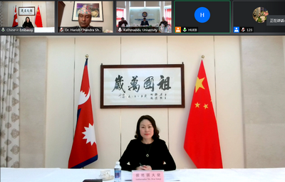 2021年1月24日,驻尼泊尔大使侯艳琪在线出席河北经贸大学和加德满都大学共同线上举办的加德满都大学孔子学院合作协议续签仪式。河北经贸大学校长刘兵,副校长、加德满都大学孔子学院中方理事长和志强,孔子学院中方院长王胜利,加德满都大学校长、孔子学院尼方理事长塔帕,副校长、孔子学院尼方院长夏尔马,尼中文教协会主席哈利仕等出席。