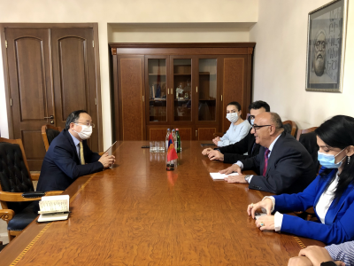 近日,驻亚美尼亚大使范勇分别会见埃里温国立大学校长奥瓦尼相、斯拉夫大学校长达比尼扬、布留索夫国立语言大学校长阿鲁秋尼扬、国立师范大学代校长霍耶强,并出席斯拉夫大学孔子课堂揭牌仪式和“中国学”研讨会开幕式,参访埃里温国立大学、国立师范大学中国文化中心。