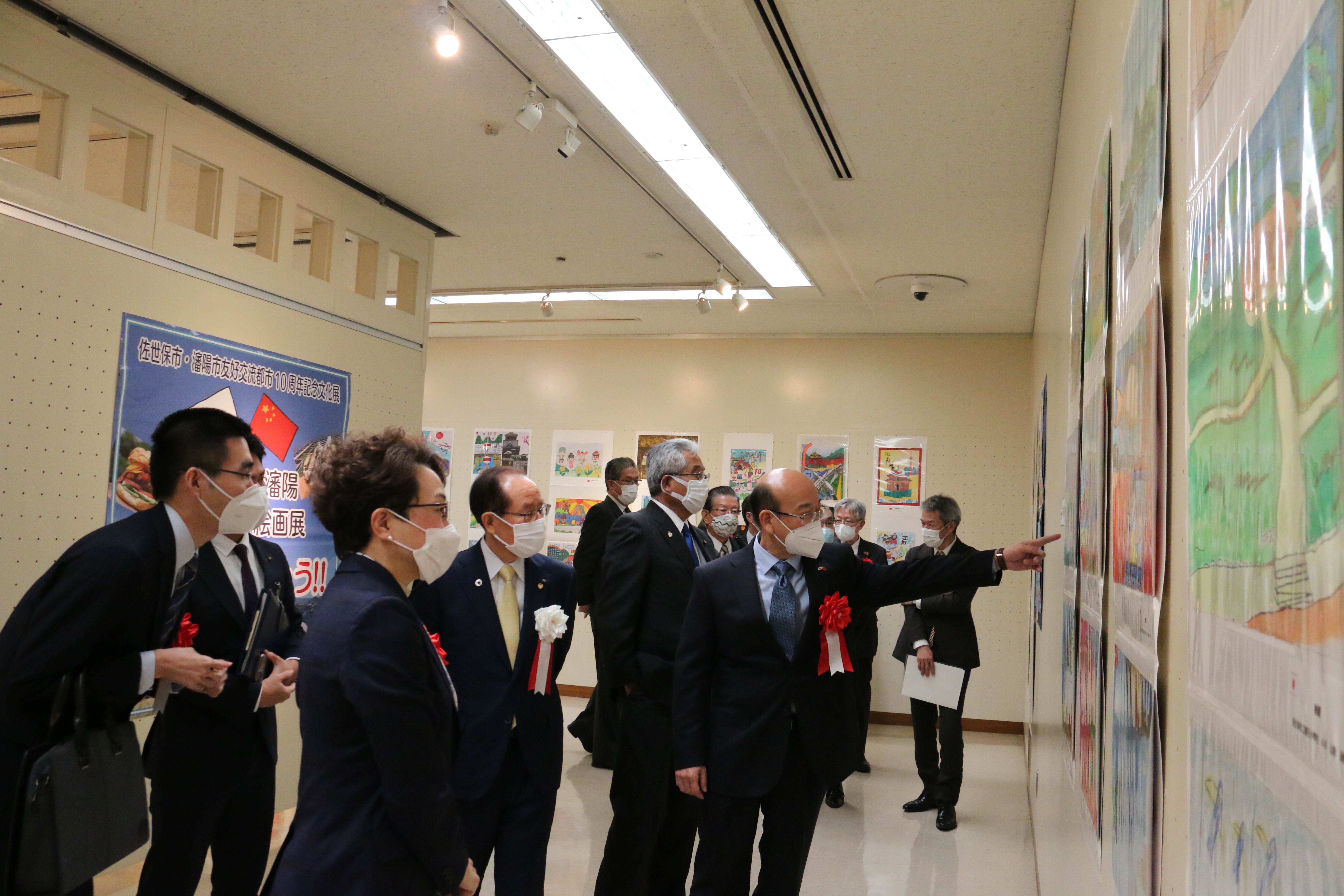 张总领事还与佐世保会场嘉宾一道为第二届佐世保沈阳儿童友好绘画展开幕剪彩,随后参观了展览。
