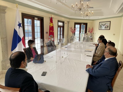 2021年12月6日,驻巴拿马大使魏强会见巴出口商协会(APEX)会长特利瓦尔多、副会长佩雷斯,以及咖啡、水果、肉类、水产品等出口商代表,就进一步推动巴特色农产品对华出口交换意见。