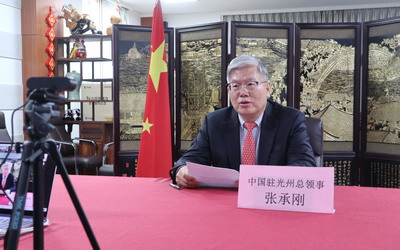 2021年12月8日,驻光州总领事张承刚在线出席山西省-全罗南道基础教育交流会。山西省教育厅厅长李秋柱、副厅长侯文一,全罗南道教育监张锡雄、副教育监金千哄,以及两地开展教育交流的24所中小学教师代表等参加。