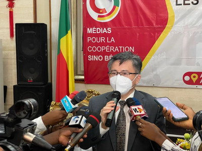 2021年12月7日,驻贝宁使馆和贝中友好媒体协会联合举办第二届“中国星期二”媒体沙龙暨媒体吹风会。驻贝宁大使彭惊涛就中非合作论坛第八届部长级会议成果、中国共产党第十九届中央委员会第六次全体会议精神、中非和中贝关系等问题接受贝宁记者联合采访,详细介绍有关情况。贝宁记者协会主席拉杜基、贝中友好媒体协会主席温佩以及贝宁国家电视台、国家报社等30余家贝主流媒体、杂志社、网络媒体近60名记者参加。