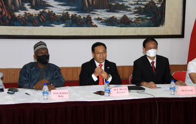 颁奖仪式在雄壮的中尼两国国歌声中拉开帷幕。崔建春大使在致欢迎词中,高度评价中尼建交50年来两国友好关系的健康发展,对贝洛大学重视与中国大学的交流和合作、重视汉语教学和中尼人文交流表示赞赏。崔大使说:“教育是创建美好未来的基础,而受过良好教育的年轻一代是国家的未来。如今我们站在新的历史起点上,面对百年未有之大变局,衷心希望青年学子能够珍惜宝贵时间和黄金机会,努力学习,不断进步,早日成为尼日利亚社会发展进步的建设者,成为中尼未来合作和牢不可破友谊的贡献者,成为建设中非人类命运共同体的参与者。”