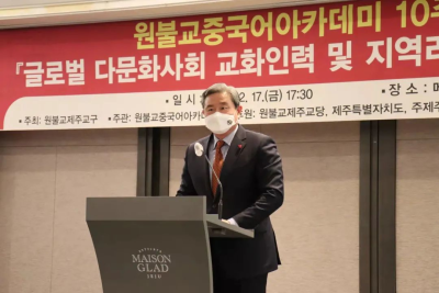 2021年12月17日,驻济州总领事王鲁新应邀出席韩国圆汉语学堂成立十周年庆典并致辞,向在场各界学员介绍中国共产党十九届六中全会精神。济州道政务副知事高荣权、济州道议会议员宋永勋、圆汉语学堂校长梁万基及来自济州道各部门各行业的学员百余人出席活动。