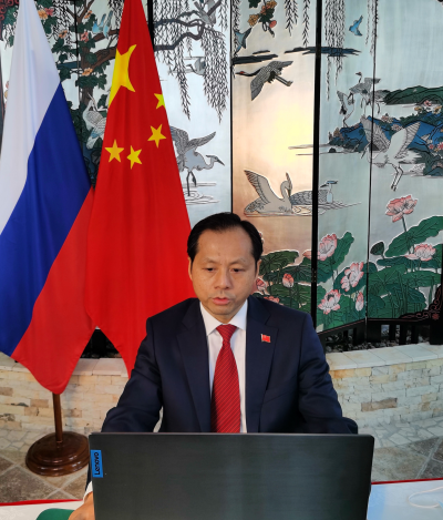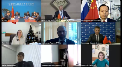 2021年12月22日,驻喀山总领事吴颖钦在线出席安徽省与俄罗斯下诺夫哥罗德州视频会议并致辞,安徽省外办主任雍成瀚、下诺夫哥罗德州外事局局长古谢娃出席并致辞。