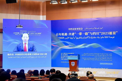 2021年12月22日,驻约旦大使陈传东在线出席由中国外文局、北京外国语大学主办的“百年机遇:共建‘一带一路’与约旦‘2025愿景’中约友好对话会”,并作题为“抓住发展新机遇,开创合作新局面”的大会发言。