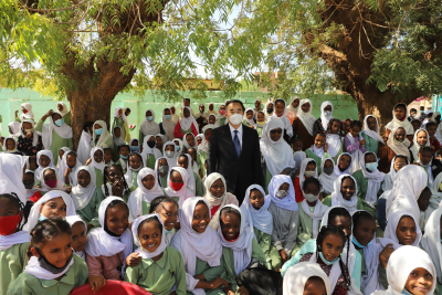 2021年12月27日,驻苏丹大使马新民出席由使馆捐赠的中苏友谊女子小学多媒体教室启用仪式。喀土穆巴哈利区教育局局长巴德里娅、中苏友谊女子小学校长苏阿黛、全校师生和学生家长共约500人出席。