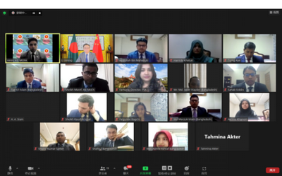 在问答互动环节,李大使播放了2022年北京冬奥会和冬残奥会宣传短片,并就中国在孟建设“一带一路”大型基建项目、孟留学生希早日返华复学、孟中印缅经济走廊前景、中国周边外交等回答学员提问。孟方对李大使的精彩授课和答疑解惑深表感谢。活动持续近两个半小时,现场气氛热烈友好。