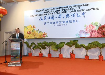 2022年1月8日,驻文莱大使于红应邀出席“文莱—中国‘一带一路’促进会”第二届理事宣誓就职典礼。
