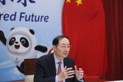 孙大使强调,北京冬奥的筹办理念是“绿色、共享、开放、廉洁”。中国坚持绿色环保办会,打造树木繁茂、生态环保的赛区,将发展体育事业同促进生态文明相结合,确保人们既能享受冰雪运动的无穷魅力,又能保护大自然的生态之美。中国坚持简约办会、干净办赛,严格预算管理,严控办奥成本,确保简办不简单、简化不简陋、简约又精彩,同时对使用兴奋剂、违反体育道德等行为“零容忍”,确保冬奥会办成“纯洁的冰雪,激情的盛会”。中国坚持健康安全办会,坚持以人民为中心,本着对中国本土民众、来自世界各国的全体运动员和参赛人员生命健康高度负责的态度,把疫情防控放在首位,制定了科学精准的防疫政策,将严格执行远端防控、闭环管理、疫苗接种等必要措施,尽全力为所有参会人员创造一个健康安全的环境和良好的赛事体验。