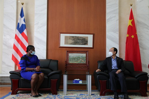 2022年1月19日,驻利比里亚大使任义生应约会见利国家广播电台台长凯莫和副台长杨。