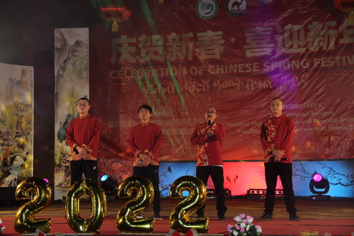 2022年1月29日,驻厄立特里亚大使蔡革在厄立特里亚阿斯马拉罗马剧院参加2022年“中国春节联欢会”节目录制,共庆新春佳节,歌颂中厄友谊。