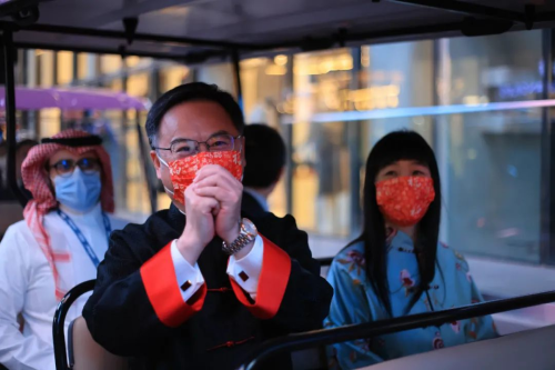 2022年2月3日,北京冬奥会开幕前夜。驻沙特大使陈伟庆来到位于利雅得市中心的“林荫大道”,与沙特民众一同庆祝中国农历新年。