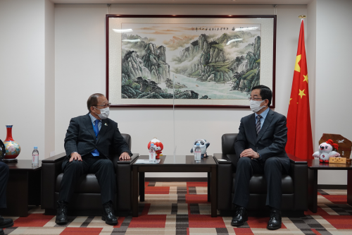2022年2月7日,驻新潟总领事孙大刚在馆内会见新潟国际贸易航站株式会社社长青山正裕、专务山口良信及常务阿部英树,双边处相关人员陪同。