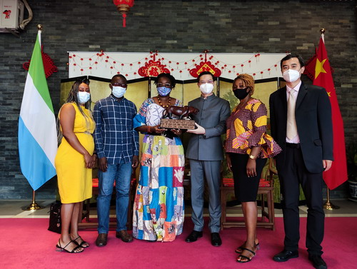 2022年2月8日,驻塞拉利昂大使胡张良分别会见塞中友好协会新任主席葛瓦奥和塞中友好联合会主席金以及两组织部分成员,就中塞友好合作进行交流。
