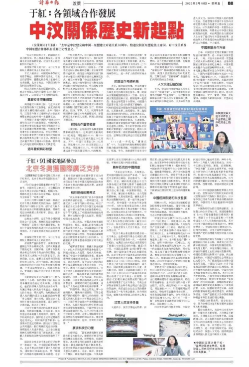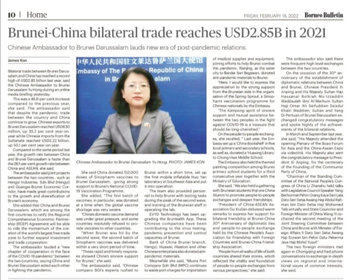 2022年2月17日,驻文莱大使于红举行线上媒体吹风会,介绍中文关系、北京冬奥会和中国经济形势与科技发展相关情况。
