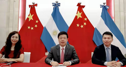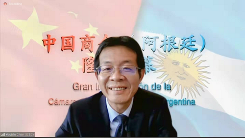 2022年2月18日,驻阿根廷使馆与阿生产发展部、外交部在线举办庆祝中阿建交50周年大会暨中国商会(阿根廷)成立仪式。驻阿根廷大使邹肖力、阿生产发展部长库尔法斯、外交部国际经济关系国秘托德斯卡出席并致辞。中国商会(阿根廷)陈友滨会长、阿贸易和服贸商会会长格林曼、阿全国工业联盟主席德里奥哈、阿冶金工业协会会长卡斯特亚尼、阿国际关系理事会主席博尔顿等分别讲话。