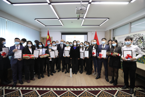 2022年2月19日,“逐梦中国”驻吉尔吉斯斯坦使馆赴华奖学金项目面试选拔及颁奖仪式在比什凯克国立大学举行,驻吉尔吉斯斯坦大使杜德文、比什凯克国立大学校长穆萨耶夫出席仪式并致辞。