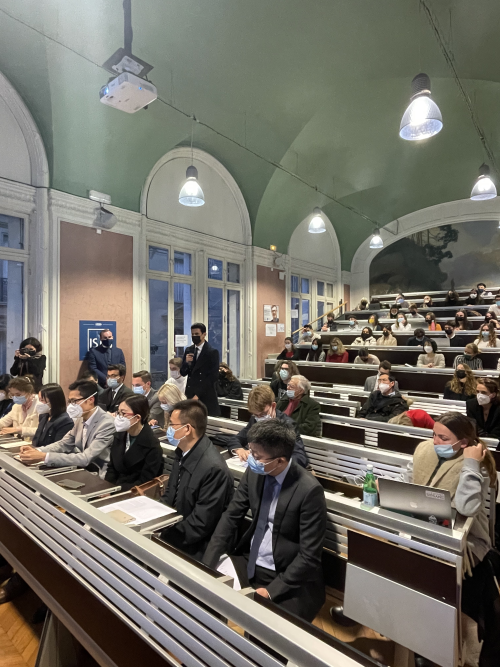 卢大使首先发表主旨演讲,以丰富的事例、详实的数据、生动的语言,深入阐释怎么看中国、怎么看当今世界的和平与发展、怎么看中法中欧关系三大问题,有针对性地回应、驳斥涉华错误论调。卢大使表示,人类社会走到了一个新的十字路口,面临封闭还是开放、战争还是和平的选择。百年变局变中生乱,但也乱中蕴机,只要国际社会在多边主义的旗帜下共同努力,发扬同舟共济的“抗疫精神”、和平竞赛的“奥运精神”,就一定能够跨过当前挑战,共同迈向更光明的未来。卢大使还寄语在场青年学生,表示希望青年一代发挥自身优势,用包容、客观的态度去发现并向法国介绍真实的中国,为中法、中欧交流合作架更多的桥、铺更多的路,共同建设一个更加美好、团结的世界。
