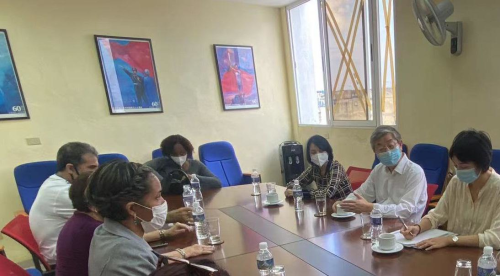 哈瓦那大学孔子学院院长罗赛、哈瓦那大学国际关系处处长冈萨雷斯热情接待,表示愿意克服疫情影响,发挥孔院在两国人文交流中的重要作用,为深化古中友谊作出贡献。