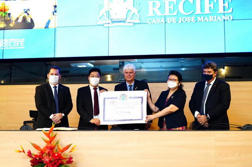 2022年3月18日,驻累西腓总领事严宇清应议长邀请出席累西腓市议会授予累西腓华侨华人协会会长卢功荣“荣誉市民”称号仪式并致辞。累西腓市议长罗梅力诺·贾杜巴、前议长爱德华多·马尔克斯议员、伯南布哥州议员吉列尔梅·儒尼奥尔、当地华侨华人代表等出席仪式。