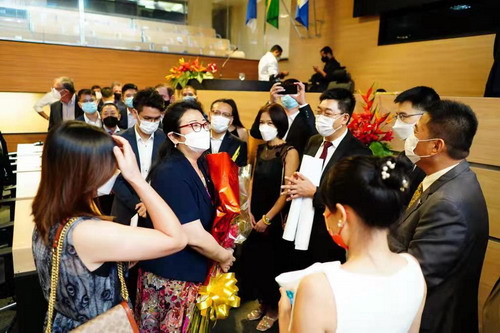贾杜巴议长表示,以卢功荣先生为代表的中国侨民为累市发展和民众福祉作出重要贡献,市议会特颁发“累西腓荣誉市民”证书和奖章表示感谢。累市议会将不遗余力推动累市和中国在各领域的合作与交流,更好地造福两地人民。