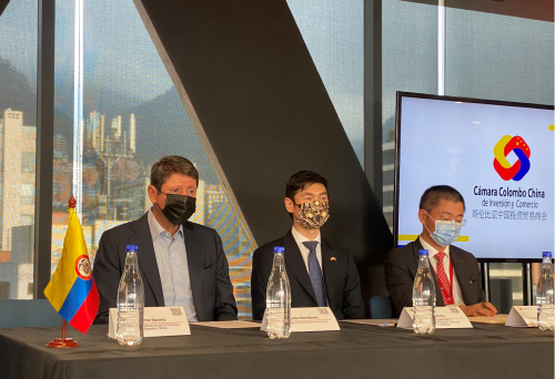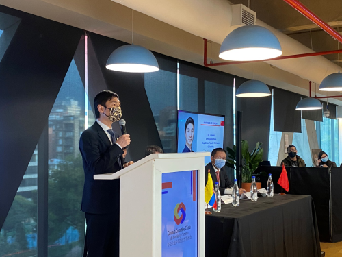 2022年3月17日,驻哥伦比亚大使蓝虎出席哥中投资贸易商会第十三届年会并致辞。