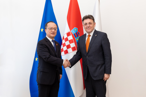 2022年3月23日,驻克罗地亚大使齐前进会见克经济商会会长布里洛维奇,商会国际部负责人科巴利等参加。