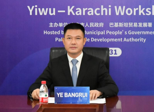 义乌市市长叶帮锐介绍了义乌经济社会发展情况以及深化贸易投资便利化各项政策及努力,表示巴基斯坦是义乌的重要贸易伙伴,2021年义乌与巴进出口总额近6亿美元,卡拉奇是巴基斯坦经济中心、重要港口和最大城市,义乌在小商品生产流通、跨境电商、物流等方面具有独特优势,双方互补性强、经贸合作潜力巨大,希望义乌能进一步发挥浙江省乃至中国窗口作用,在扩大自巴进口、电商、展会、人文交流等领域增进交流合作,努力为中巴经贸关系贡献义乌力量。