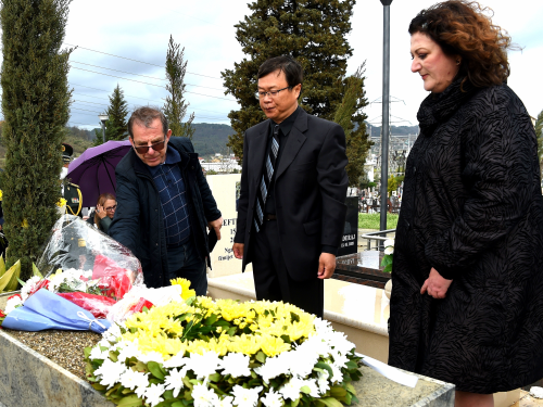 周大使随后还到阿议会前阿中友好小组主席、前总理菲诺和北京外国语大学阿语专业奠基人菲佐教授墓前,与其家人一同祭奠,缅怀其生前为中阿友好事业做出的杰出贡献。