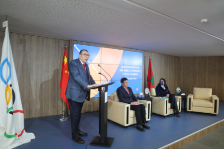 2022年4月6日,为积极宣介中国举办奥运会的成功经验和为弘扬奥林匹克精神作出的突出贡献,促进双边体育交流,由驻摩使馆、拉巴特中国文化中心和摩体育发展协会共同举办的“一起向未来”——中摩奥运故事分享会暨奥林匹克运动展开幕式在拉巴特中国文化中心顺利举行,驻摩洛哥大使李昌林,摩首位奥运冠军、国际奥委会执行委员会成员纳瓦尔,摩奥委会副主席拉赫鲁,参加北京冬奥会和冬残奥会的摩运动员,部分外国驻摩使节,以及摩文化体育界人士、在摩中资机构负责人等出席活动。