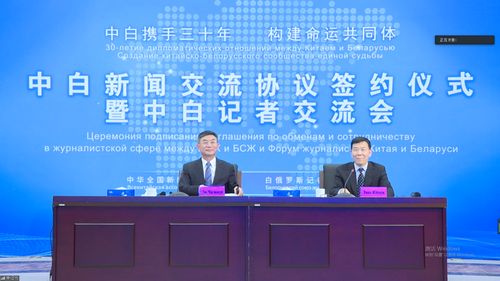 签约仪式结束后,来自人民日报、新华社、中央广播电视总台、中国日报的记者代表与白国家通讯社、国家电视台、《今日白俄罗斯报》等媒体同行围绕“深化新闻交流合作、共建中白命运共同体”主题进行了深入探讨交流。活动气氛友好热烈,持续近一个半小时。