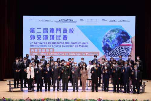 2022年4月30日,外交部驻澳门公署和澳门特区政府在澳门大学共同举办第二届澳门高校外交演讲比赛决赛。外交部驻澳门公署特派员刘显法、特区社会文化司欧阳瑜司长、驻澳部队赵建明参谋长、澳门中联办教青部石书正副部长、特区社会文化司司长办何钰珊主任、教育及青年发展局龚志明局长等嘉宾出席并为获奖选手颁奖。8所特区参赛高校师生、特区青年社团代表及往届澳门青少年外交知识竞赛参赛师生约200人现场观赛。