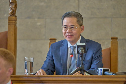 郑泽光大使在开幕式上发表题为“加强绿色氢能合作,打造中英合作新亮点”的重要讲话,他表示此次论坛恰逢其时,既是贯彻中英领导人关于加强绿色发展合作的重要行动,也是武汉和曼彻斯特友城合作的务实举措,对于助力中英关系在新起点上释放新活力、对于应对全球气候变化具有重要意义。中英在氢能领域各具优势,合作意愿强烈、潜力巨大,中方愿与英方一道共同努力,支持两国绿色氢能等各领域务实合作,推动双边关系在对话与合作的正确轨道上行稳致远,更多造福两国人民,为应对全球气候变化做出更多贡献。